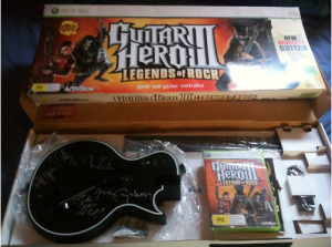 You are bidding on a signed Guitar Hero Guitar by Def Leppard , Bundled with GH3: Legends of Rock. The autographs are on the front of the Guitar as pictured, and we have obtained during their 2008 sold out concert in Auckland, New Zealand.