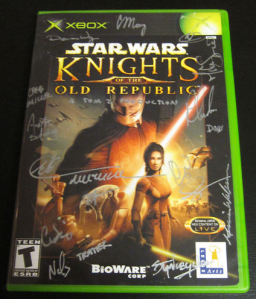 Christian Nutt has posted an auction for a copy of Star Wars: Knights of the Old Republic for Xbox, autographed by several members of the Bioware team.